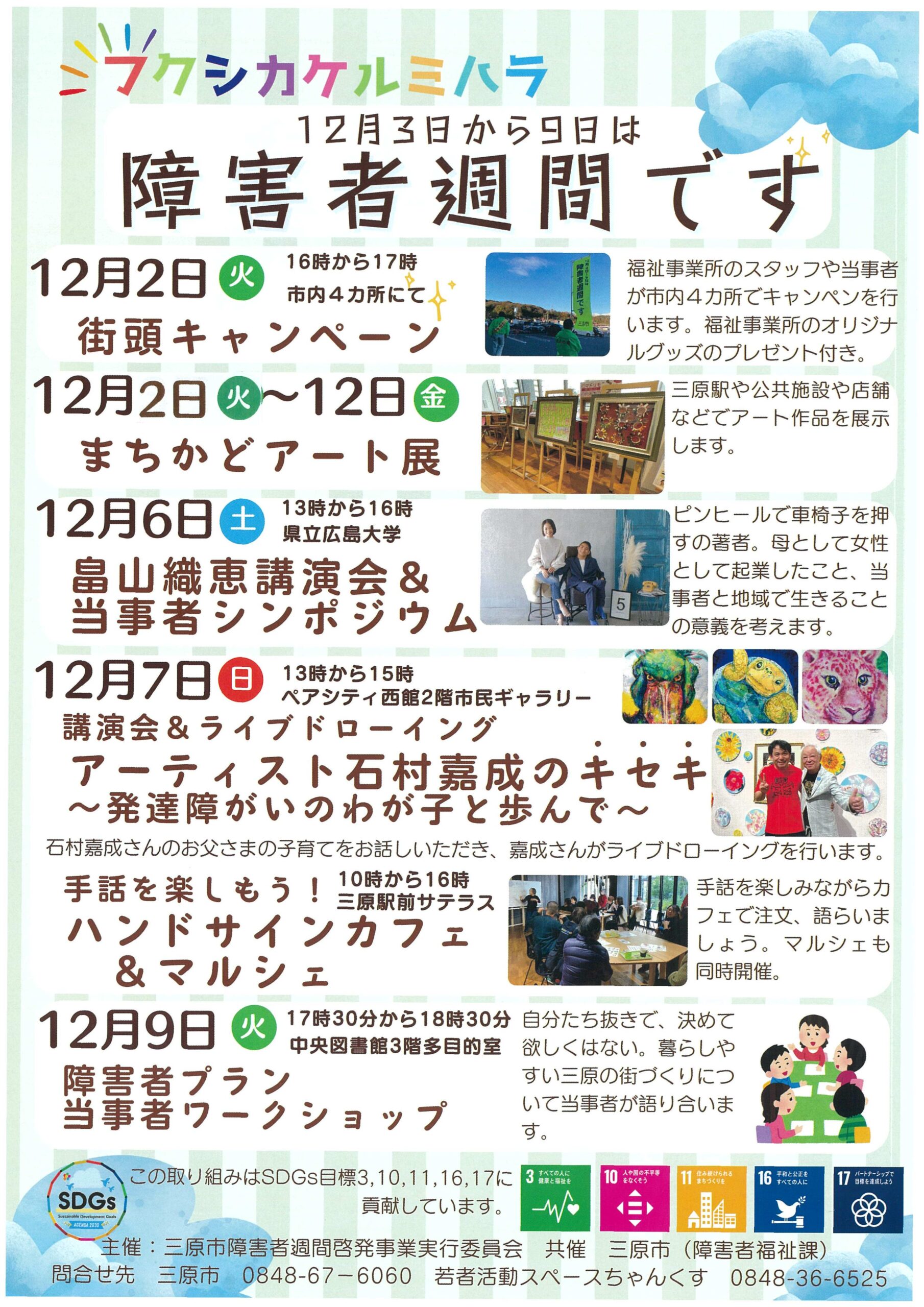 12月3日から9日の障害者週間にあわせ三原市ではフクシカケルミハラまちかどアート展が開催され、